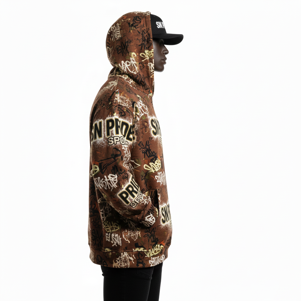 เสื้อฮู้ดดี้สตรีทแวร์แบบสั่งทำพิเศษ พิมพ์ลายเต็มตัว ย้อมสีพื้น ผ้าฝ้าย 100% ราคาโรงงาน MOQ ต่ำ