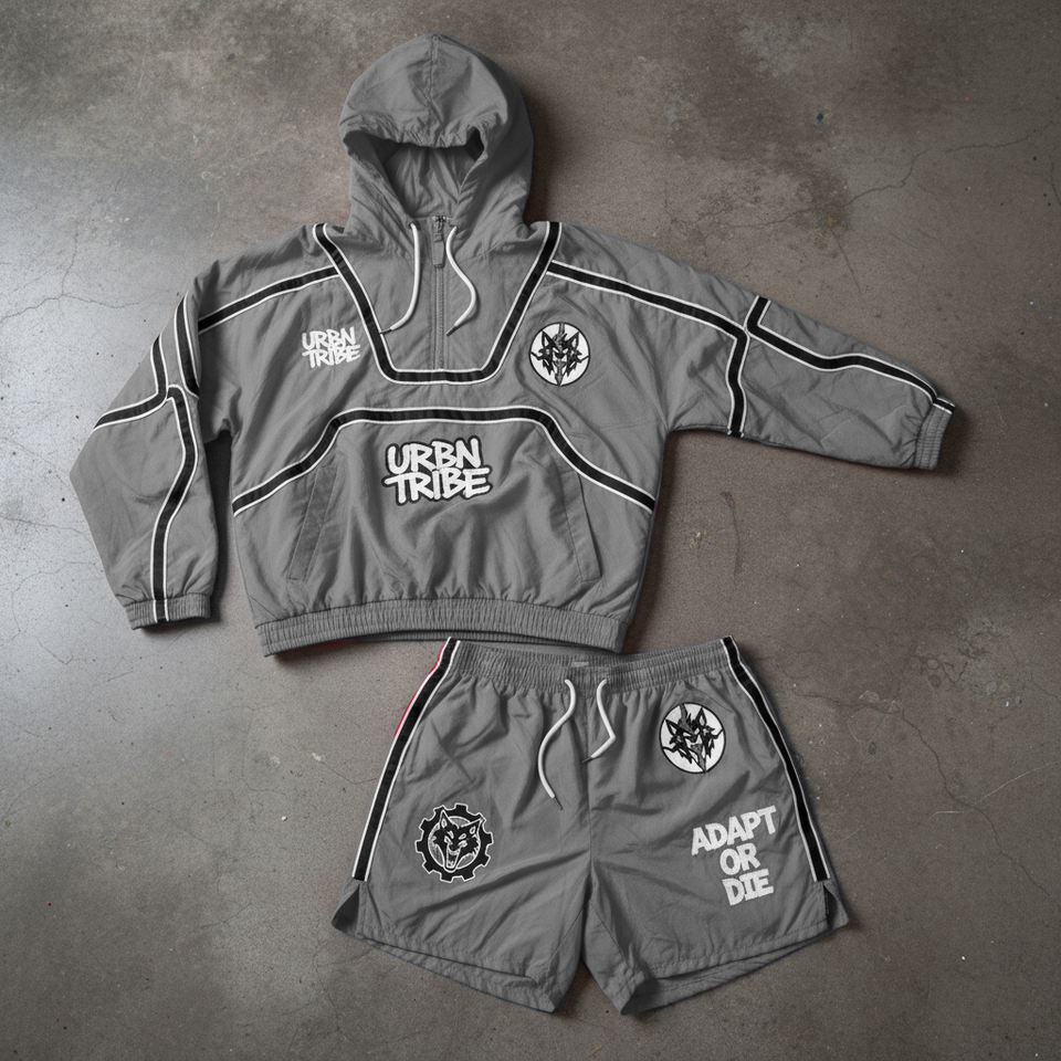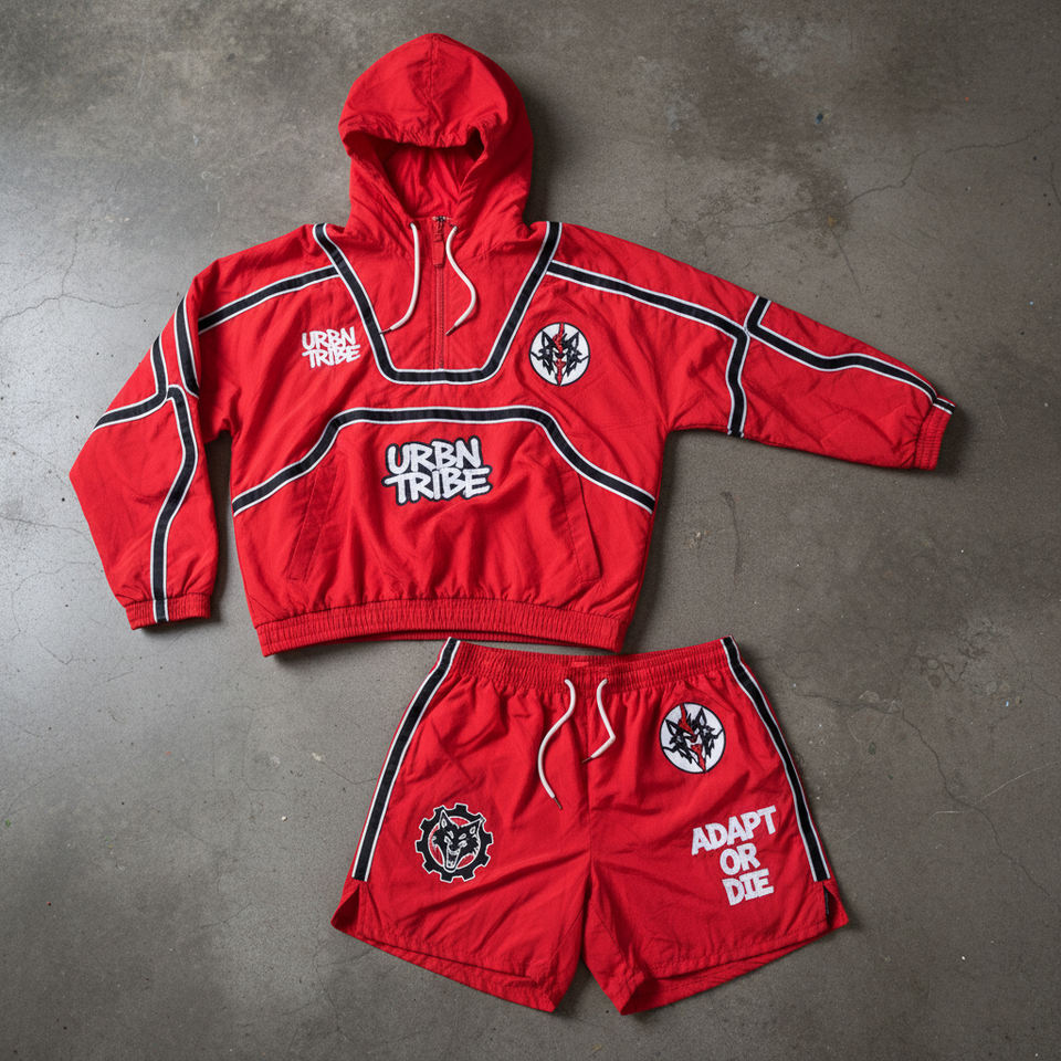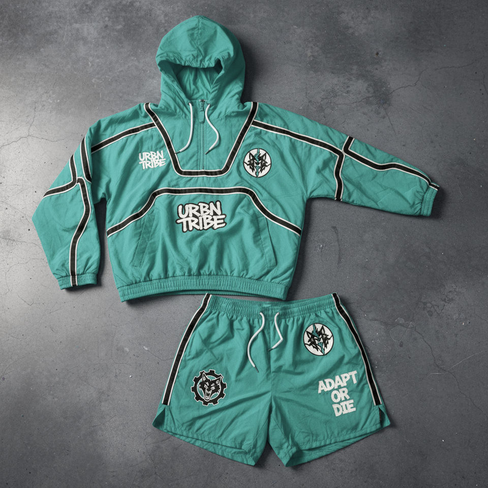 ชุดแจ็คเก็ตกันลมและกางเกงขาสั้นแบบสั่งทำพิเศษ ดีไซน์ยูนิเซ็กซ์ สีสันตัดกัน ทำจากไนลอน