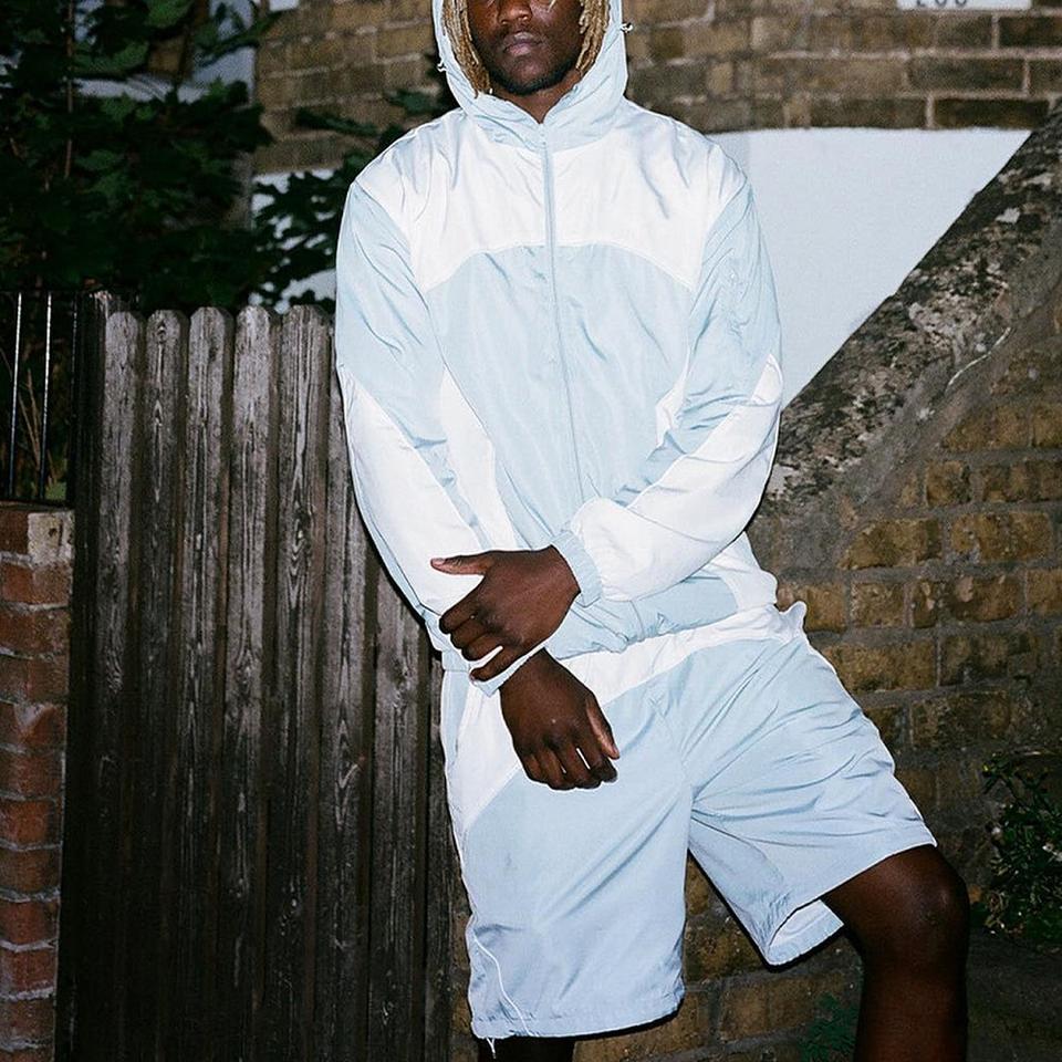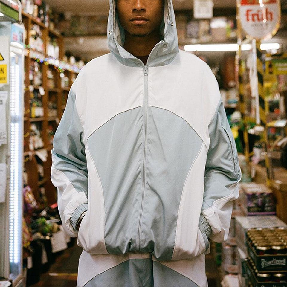 ชุดเซ็ตเสื้อแจ็คเก็ตกันลมแบบมีฮู้ดและกางเกงขาสั้น ดีไซน์สั่งทำได้ สำหรับทุกเพศ ผ้าคอตตอน 100% น้ำหนักมาก ตกแต่งสีสันแบบคัลเลอร์บล็อกกิ้ง เหมาะสำหรับฤดูหนาว