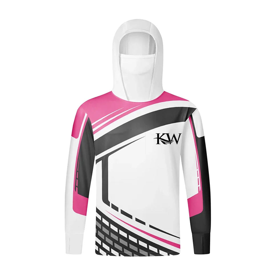 เสื้อฮู้ดดี้ตกปลาลายปลาวาฮู ดีไซน์สั่งทำพิเศษ ไซส์พลัส ผ้าสแปนเด็กซ์/โพลีเอสเตอร์ แขนยาว ระบายอากาศได้ดี พร้อมหน้ากากปิดหน้า ป้องกันรังสียูวี UPF 50