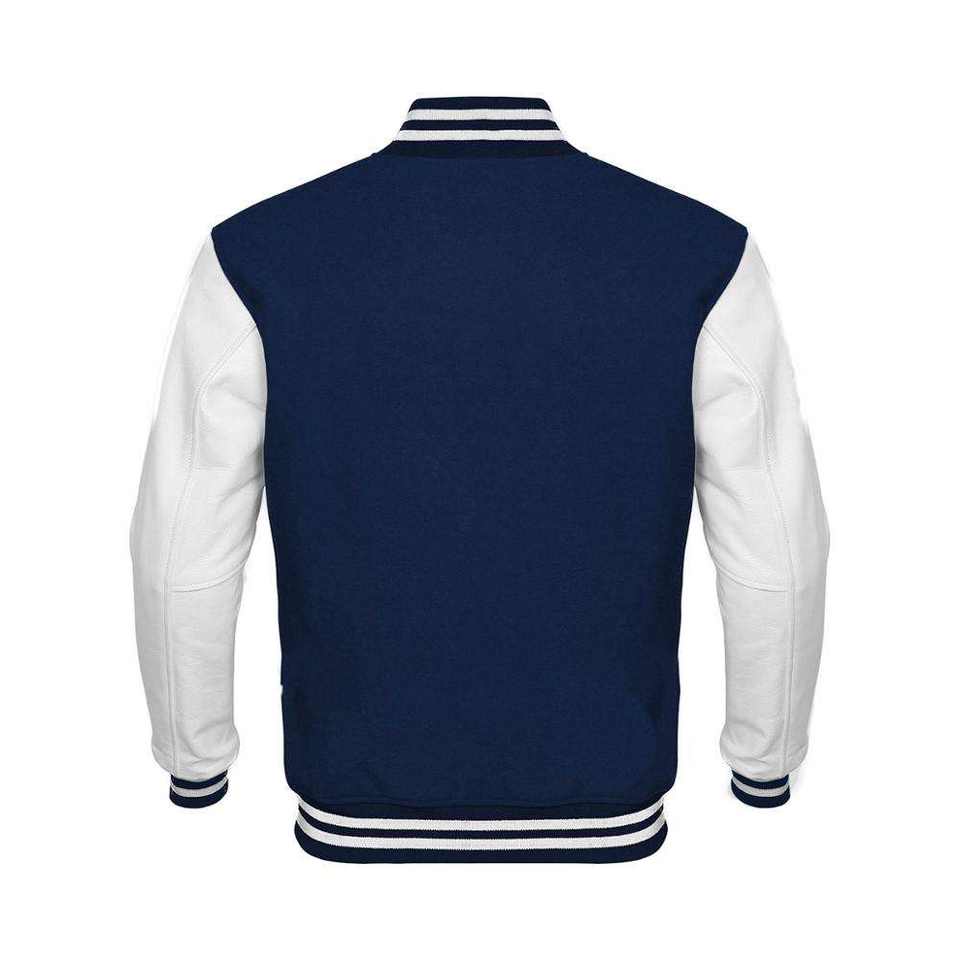 แจ็คเก็ตเบสบอลแบบกำหนดเอง หนังสีขาวและขนแกะสำหรับฤดูหนาว แจ็คเก็ตวาร์ซิตี้สำหรับผู้ชาย แจ็คเก็ตวาร์ซิตี้สำหรับวิทยาลัย แบบ unisex