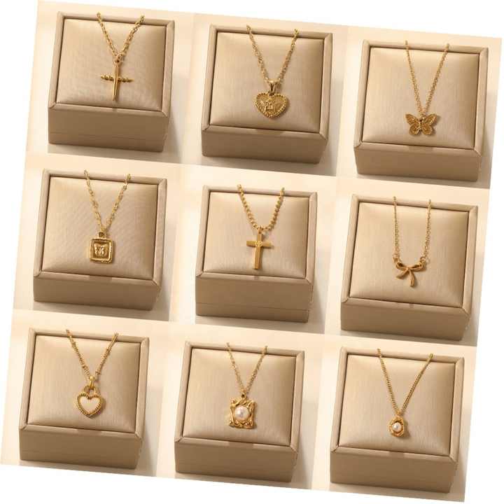สร้อยคอจี้รูปผีเสื้อ มุก โบว์ เปลือกหอย หัวใจ ดีไซน์สั่งทำ ขายส่ง ทำจากสแตนเลสชุบทอง 18k สำหรับผู้หญิง