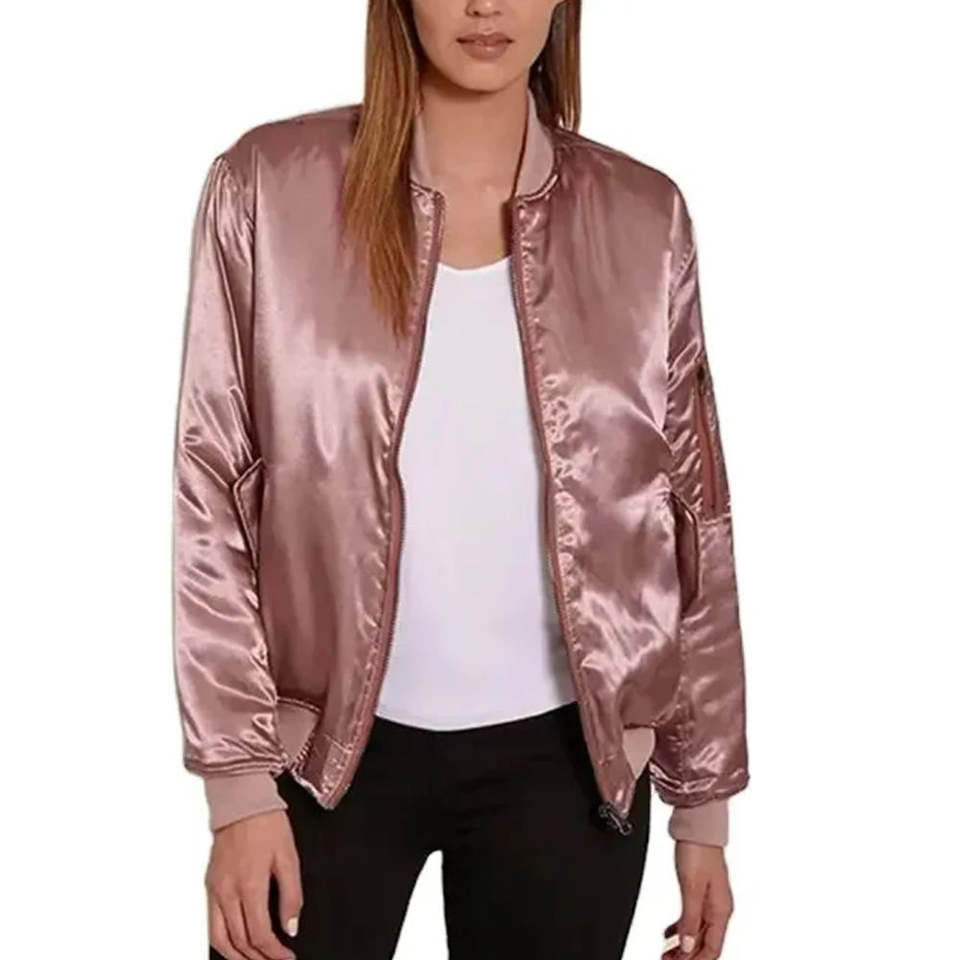 แจ็คเก็ตเบสบอลผ้าไหมแบบกำหนดเองสำหรับผู้หญิงและผู้ชาย แจ็คเก็ตบอมเบอร์แบบขายส่ง