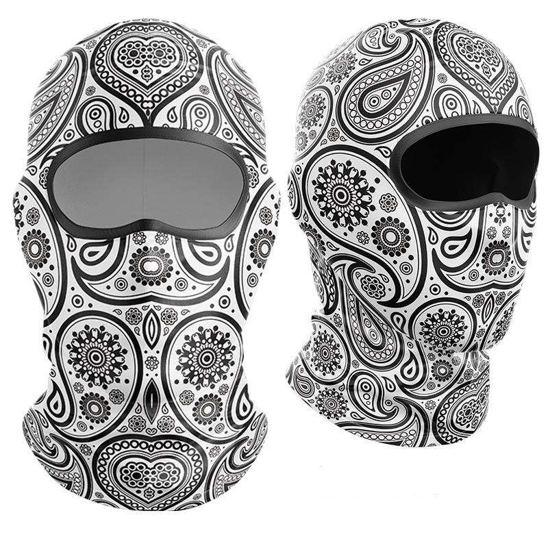 หมวกบาลาคลาวาไหมพิมพ์ลายดิจิทัลสีดำขาว ออกแบบเอง สำหรับเล่นสกี ปิดหน้าเต็มใบ เหมาะสำหรับการเดินทาง