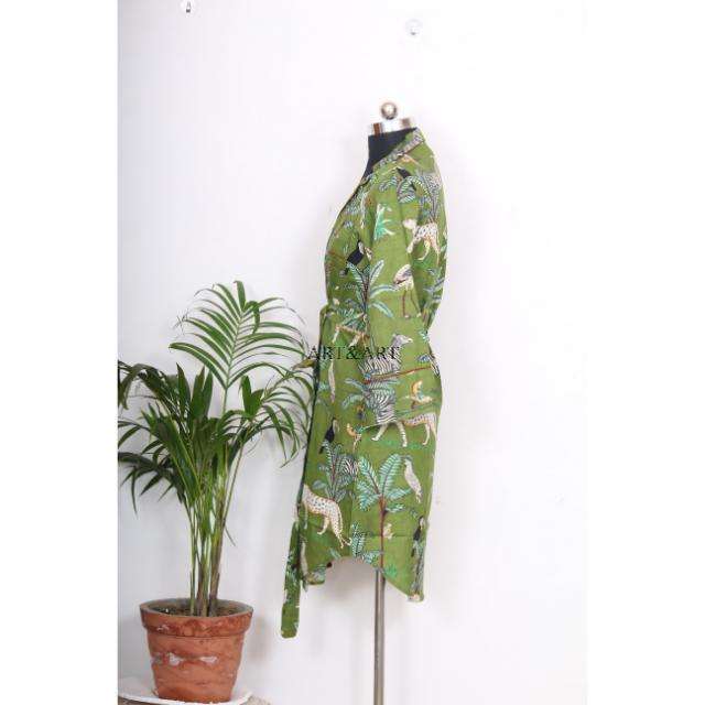 Custom Designed Bohemian Floral Printed Women's Jacket Handmade Cotton Plus Size Casual Dress Cutout Button Korean Style
