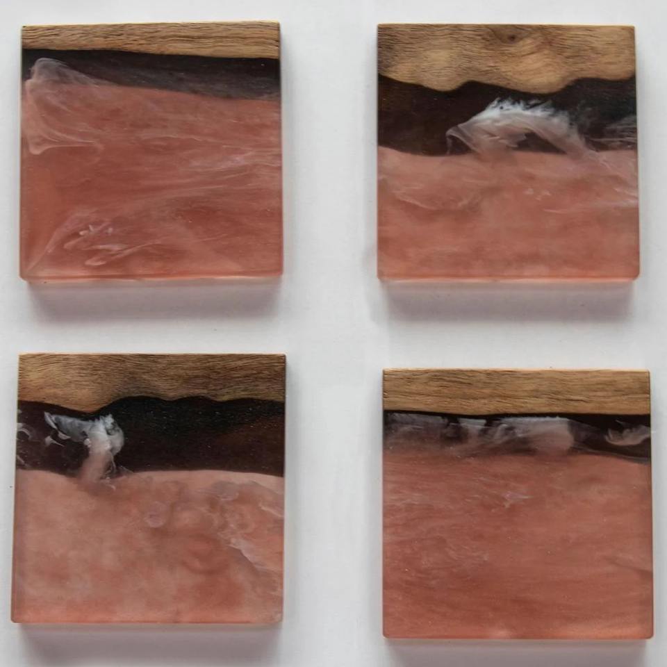 แผ่นรองแก้วเรซิ่นอีพ็อกซี่ลายไม้คลาสสิกสำหรับกาแฟ ชา แก้วน้ำ - แผ่นรองโต๊ะและแผ่นรองจานดีไซน์เนอร์ พร้อมสีและขนาดที่กำหนดเองได้