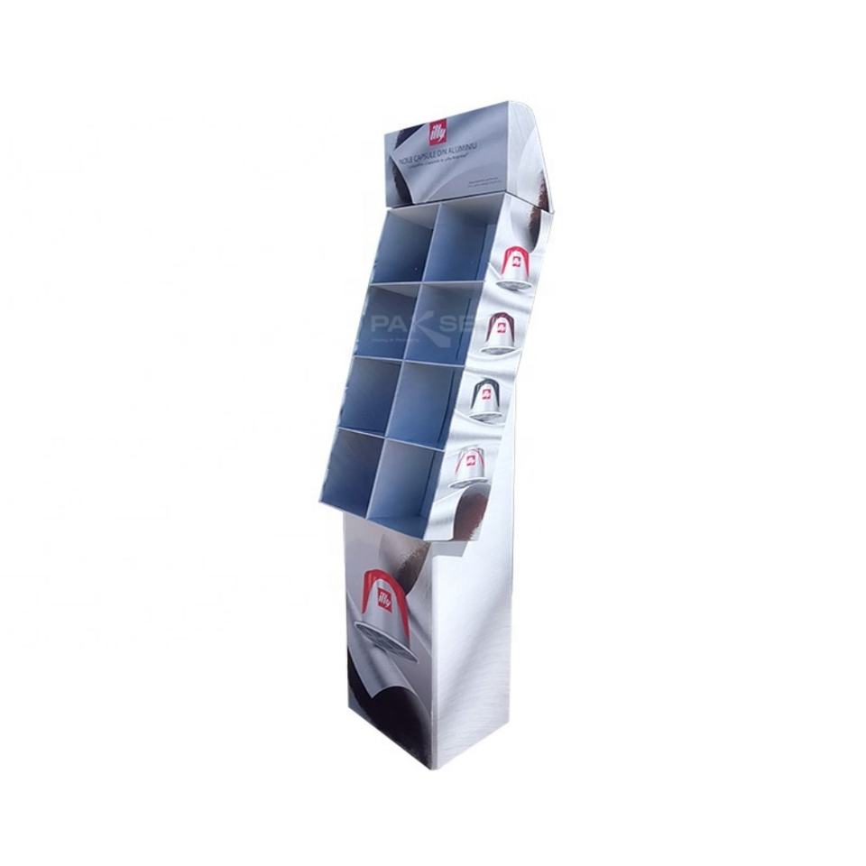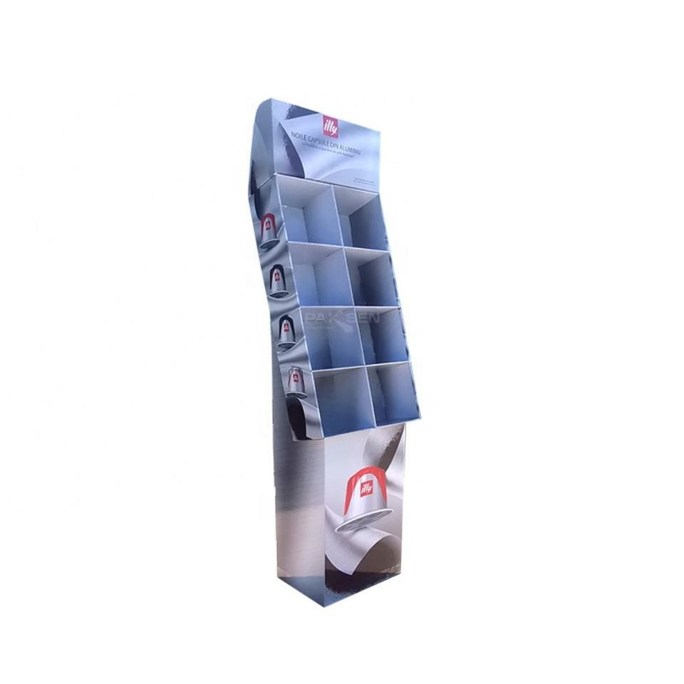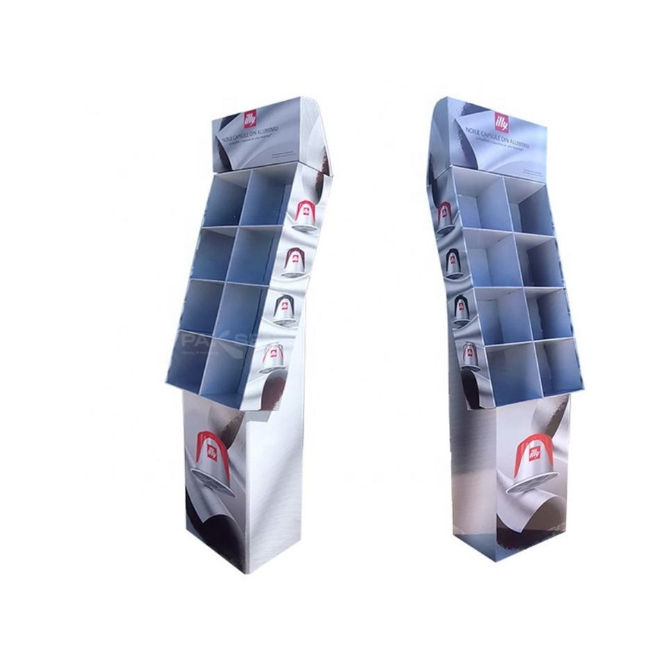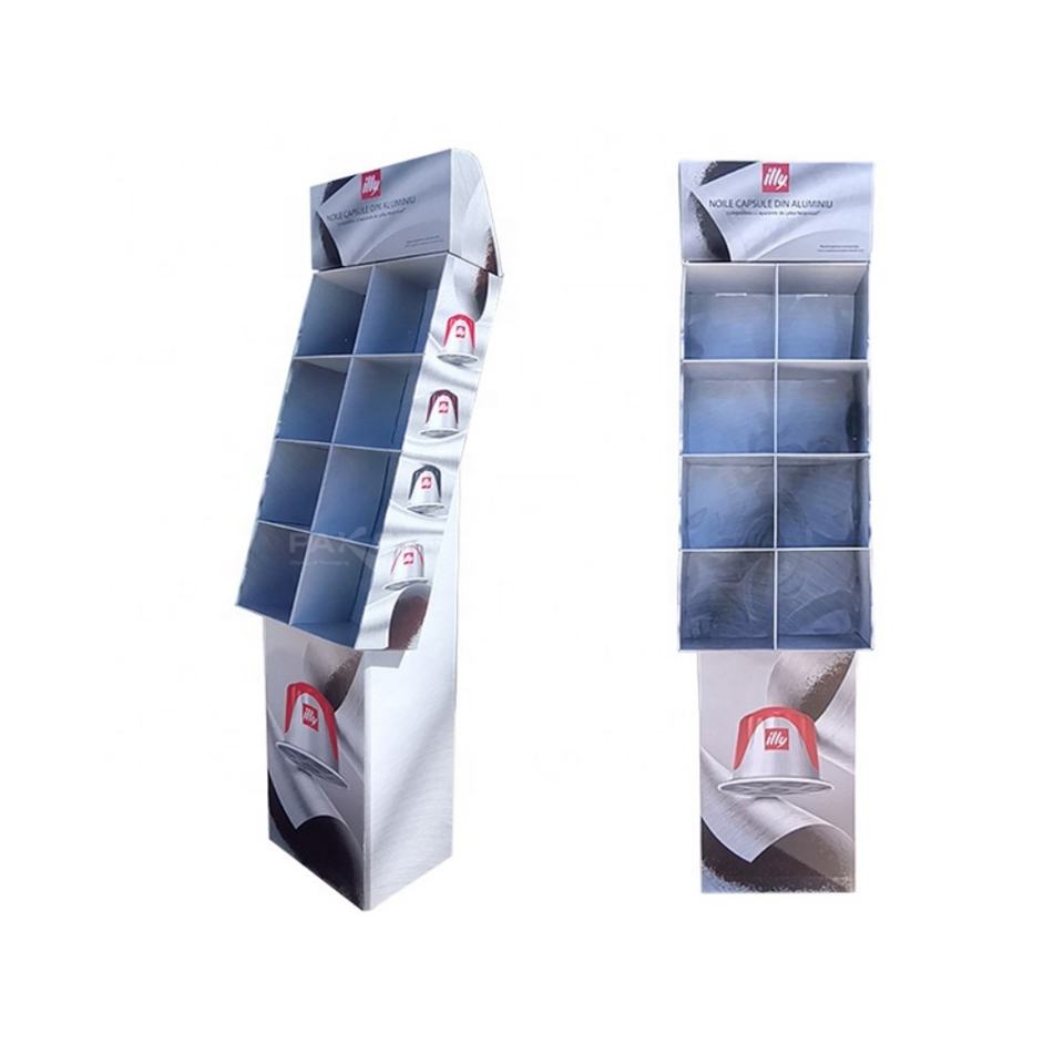 ชั้นวางกระดาษแข็งแบบพับได้สำหรับวางบนพื้น ออกแบบตามสั่ง สำหรับวางแพ็คกาแฟ