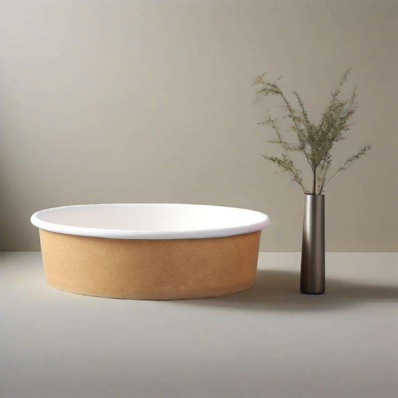 ชามกระดาษคราฟท์กันรั่วชามใส่ขนมและสลัดพิมพ์สองสีทนทานเกรดอาหารออกแบบได้ตามต้องการ