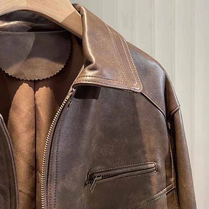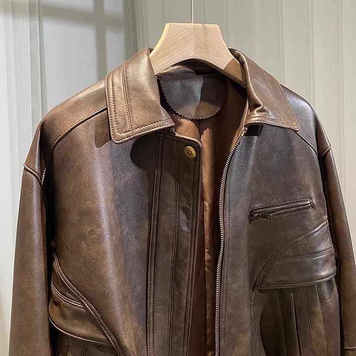 ชื่อผลิตภัณฑ์:แจ็คเก็ตหนังแท้ผู้หญิง