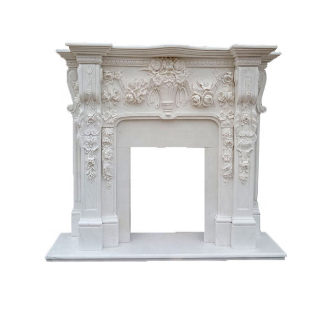 Custom Designed Genuine White Marble Carved Fireplace in Negotiable Price