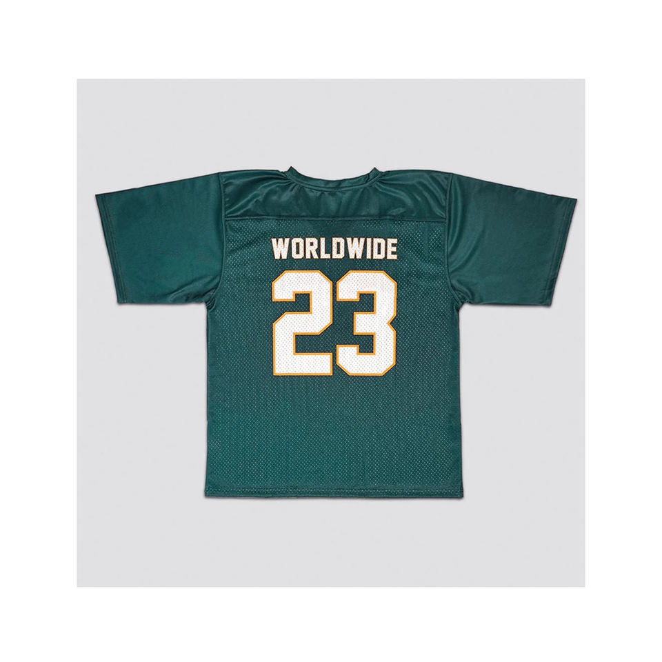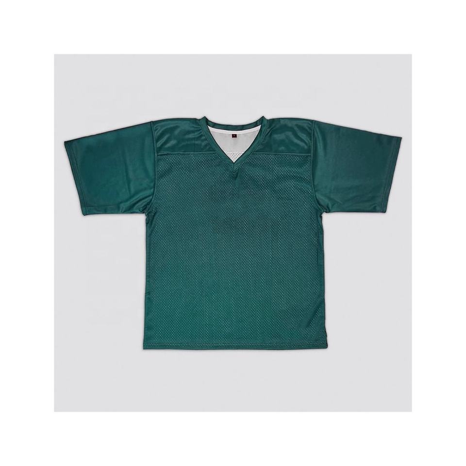 เสื้อฟุตบอลอเมริกันแบบเลือกสีเขียวระบายอากาศได้อย่างรวดเร็วไซส์ใหญ่พิเศษสำหรับฤดูร้อนสินค้ามาใหม่พร้อมแขนสั้น