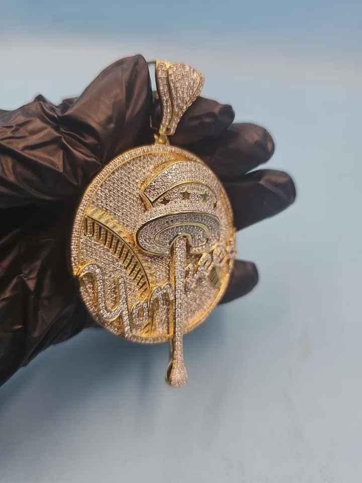 Custom Designed HipHop Style Pendant 925 Silver Pendant VVS Moissanite Custom Latter Name Circle Pendant Two Tone Initial Charms