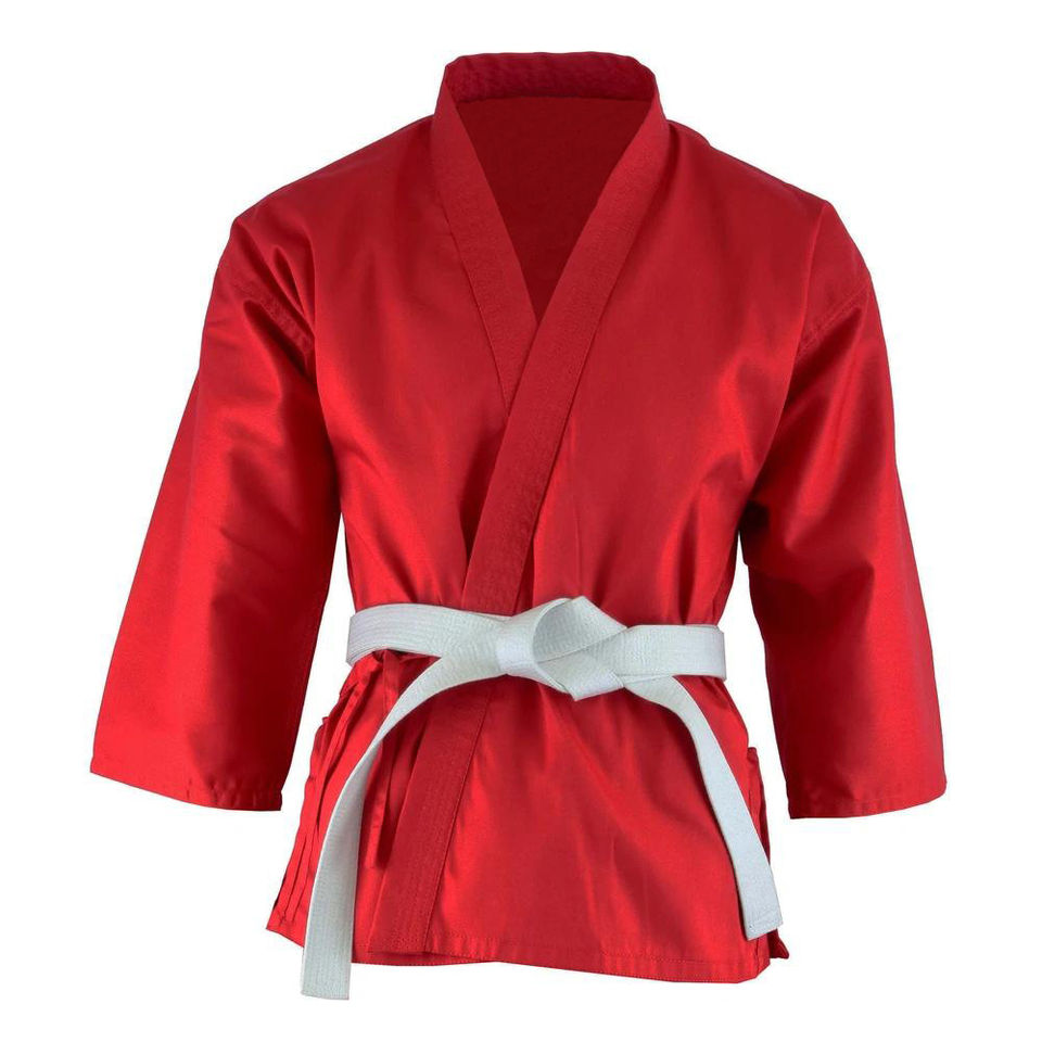 ชุดยูนิฟอร์มคาราเต้แบบสั่งทำพิเศษ พร้อมโลโก้ด้านหน้า ผลิตในปากีสถาน ด้วยเทคนิคการซักแบบพิเศษ ใช้ได้กับกางเกงมวยไทยด้วย