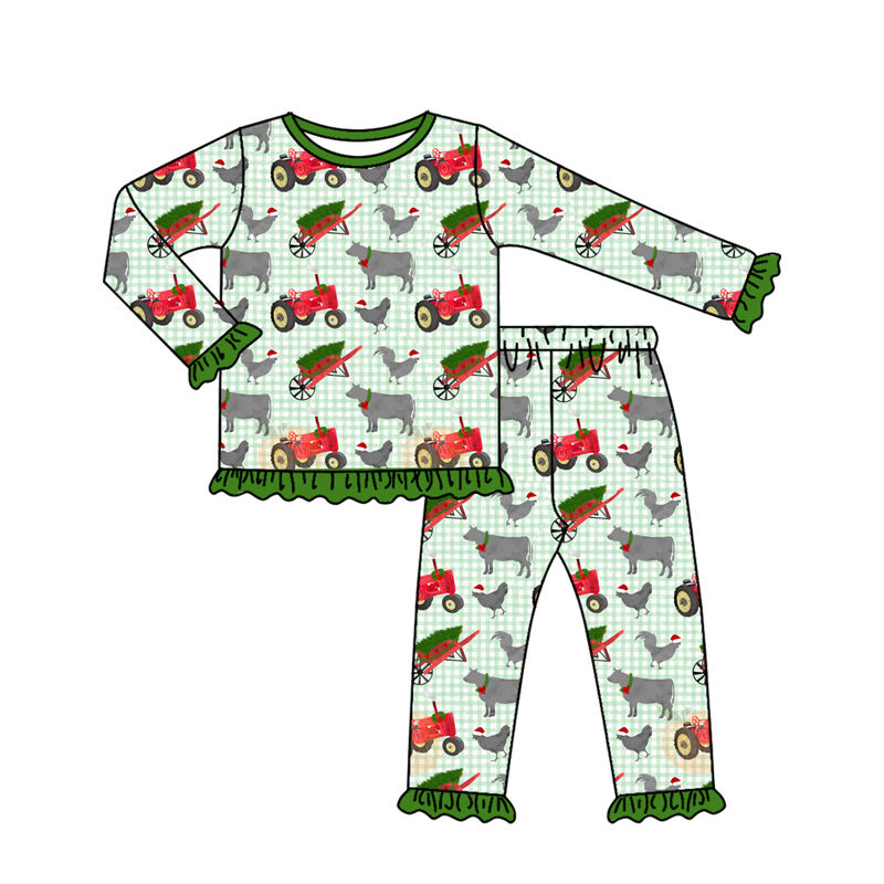 ชุดนอนแขนยาวสำหรับเด็กผู้หญิงชุดใส่นอนสำหรับเด็กทารกหญิงชุดลายสัตว์คริสต์มาสฟาร์ม