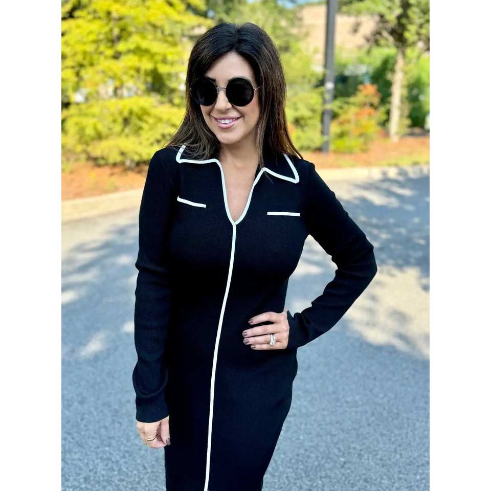 ชุดเดรสผ้าออตโตมันแบบยาวออกแบบพิเศษพร้อมปกโปโล ทำจากโพลีเอสเตอร์