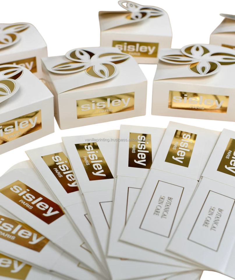 กล่องกระดาษหรูหราที่มีปั๊มลายนูนและฟอยล์สีทองสำหรับผลิตภัณฑ์น้ำหอมดูแลผิวดีไซน์แบบกำหนดเอง