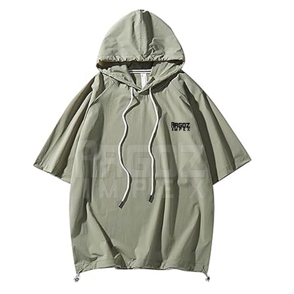 ชุดสั้นมีฮู้ดโอเวอร์ไซส์ของผู้ชายดีไซน์แบบกำหนดเองสำหรับกลางแจ้งสีทึบระบายอากาศสไตล์ลำลองสำหรับฤดูหนาว