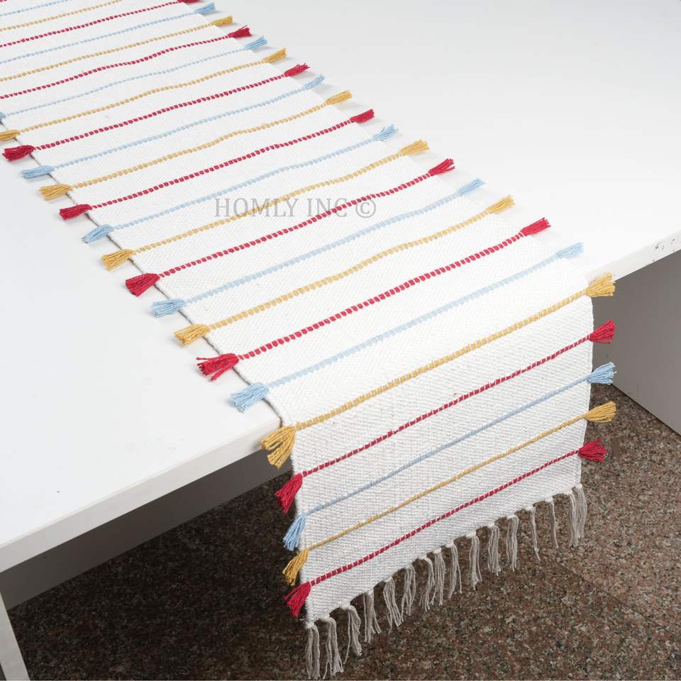ผ้าทอพร้อมฉลากส่วนตัวผ้าปูโต๊ะแบบหลายพู่ดีไซน์ตามสั่ง