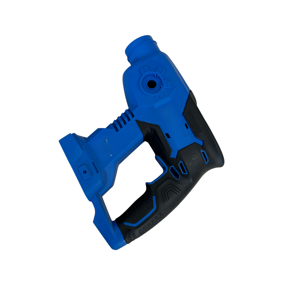 ตัวเครื่องหลักที่ออกแบบเองด้วยกระบวนการฉีดขึ้นรูปที่มีความแม่นยำและด้ามจับที่ออกแบบตามหลักสรีรศาสตร์สำหรับเครื่องมือไฟฟ้า ผลิตจากพลาสติก PP เสริมความแข็งแรงในประเทศเวียดนาม