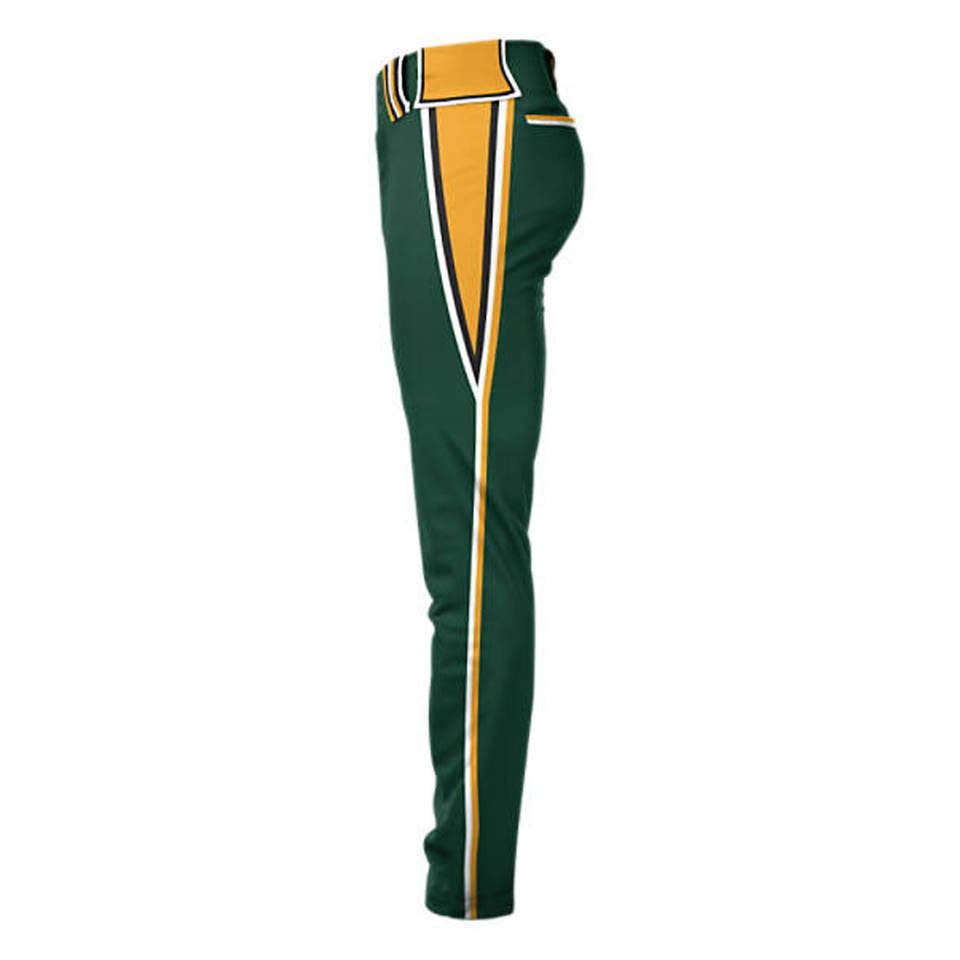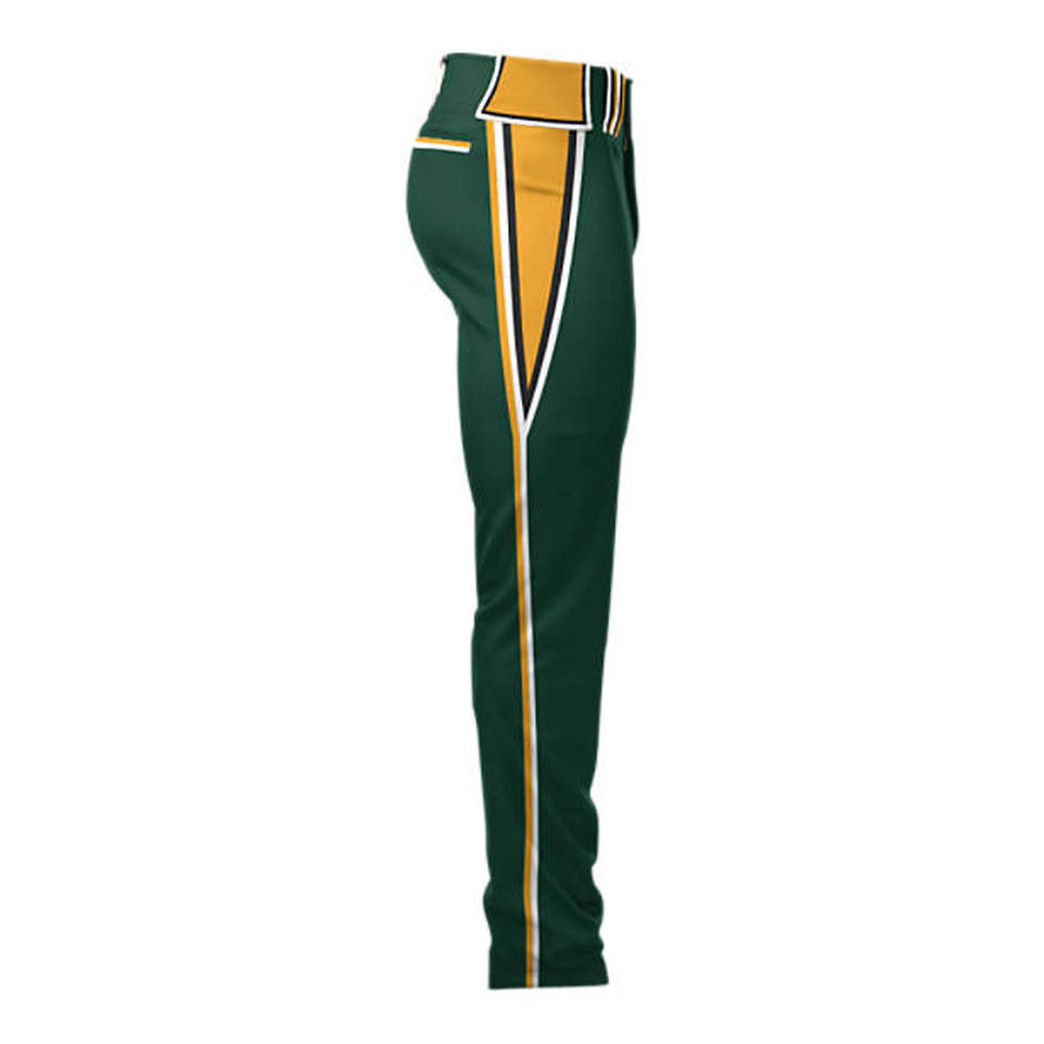 Custom Designed Printed Adult Baseball Pants Green Yellow Stripes Breathable Quick Dry Unisex Sportswear Softball Customizable