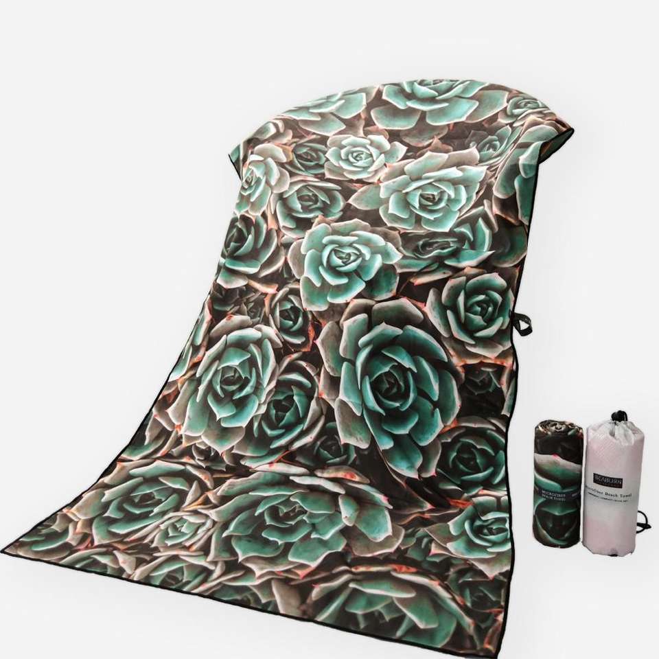 ผ้าขนหนูชายหาดรีไซเคิลผ้าแห้งเร็วดีไซน์ตามสั่งลายดอกไม้อัดลายดอกไม้สำหรับทุกวัยที่ชายหาด