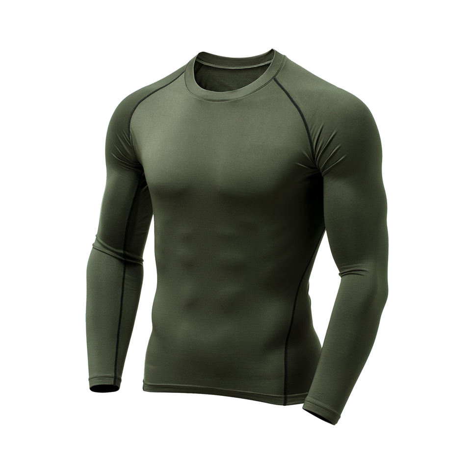 เสื้อรัดกล้ามเนื้อแขนยาวผ้าไนลอนสแปนเด็กซ์แห้งเร็วเสื้อรัดรูปพิมพ์โลโก้ฟิตเนส
