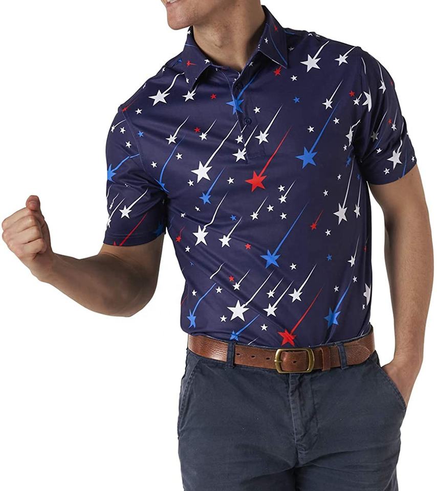 เสื้อโปโลแขนสั้นสำหรับผู้ชายเสื้อโปโลใส่เล่นกอล์ฟแบบลำลองสำหรับฤดูร้อนเสื้อกีฬาแฟชั่นซับลิเมชันบนผ้าถัก