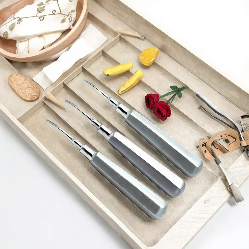 เครื่องมือถอนรากฟันแบบแมนนวล ทำจากสแตนเลสสตีล ออกแบบตามสั่ง สำหรับงานทันตกรรมและศัลยกรรมกระดูก ใช้ในงานศัลยกรรมกระดูกและข้อ ผลิตในประเทศพีเค