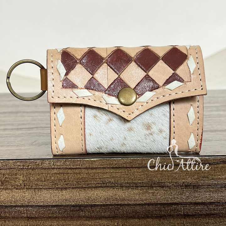 Product name:Hand Tooled Checkered Pattern Mini Coin Purse & Card Holder