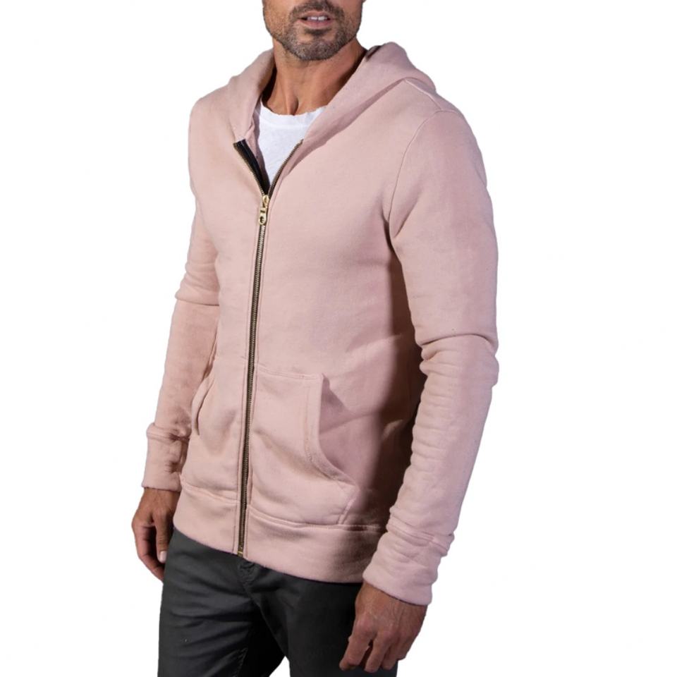 เสื้อฮู้ดดี้สีชมพูแบบสั่งทำพิเศษสำหรับผู้ชาย ทรงเข้ารูป ซิปหน้า ผ้าเฟรนช์เทอร์รี่ ผสมผ้าฝ้าย 60/40 เสื้อฮู้ดดี้หรูหราสำหรับทุกเพศ สวมใส่สบาย