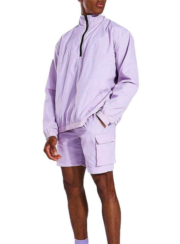 เสื้อกันลมกันน้ำสำหรับผู้ชายและผู้หญิงแจ็คเก็ตสตรีทแวร์สีทึบออกแบบได้ตามต้องการ