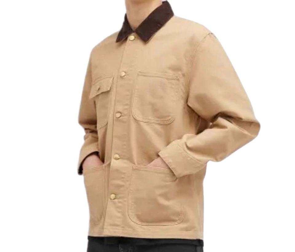 เสื้อแจ็คเก็ตทำงานสไตล์วินเทจสำหรับผู้ชาย ผ้าแคนวาส ซิป ดีไซน์เองได้ ยูนิเซ็กส์ สตรีทแวร์ คาร์เพนเตอร์ ทรัคเกอร์