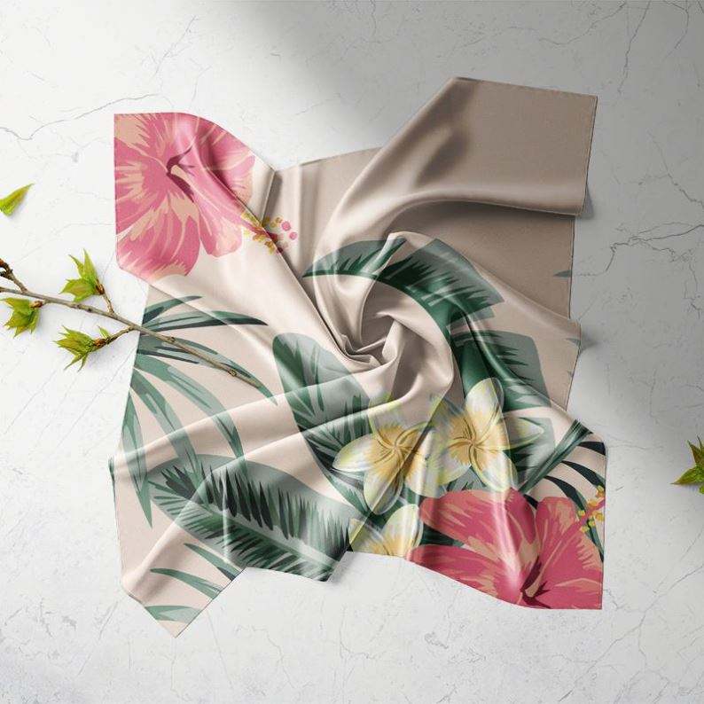 ผ้าพันคอไหมพิมพ์ลายสำหรับผู้หญิง ดีไซน์พิเศษ น้ำหนักเบา ขนาด 90 x 90 ซม. ผ้าซาตินไหมพิมพ์ลาย