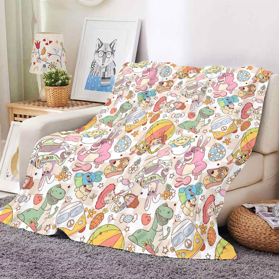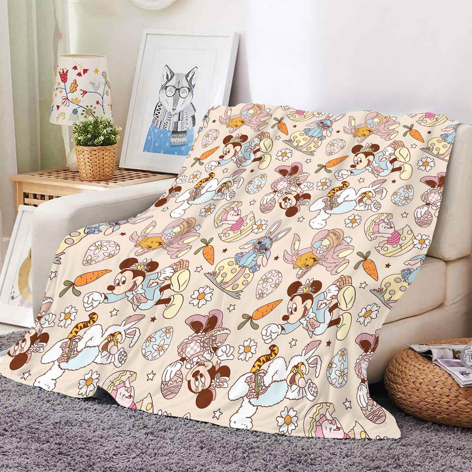ผ้าห่มเด็กพิมพ์ลายการ์ตูนกระต่ายไข่อีสเตอร์น่ารัก ผ้าฟลีซเนื้อนุ่ม ผ้าห่มคลุมเตียง ผ้าขนหนูสำหรับเดินทาง