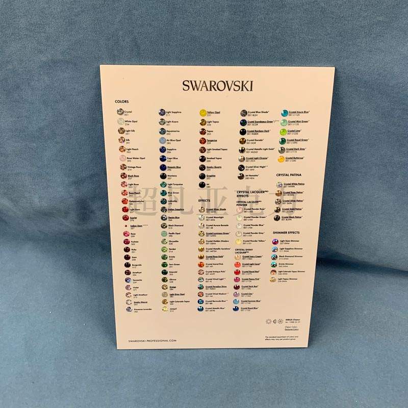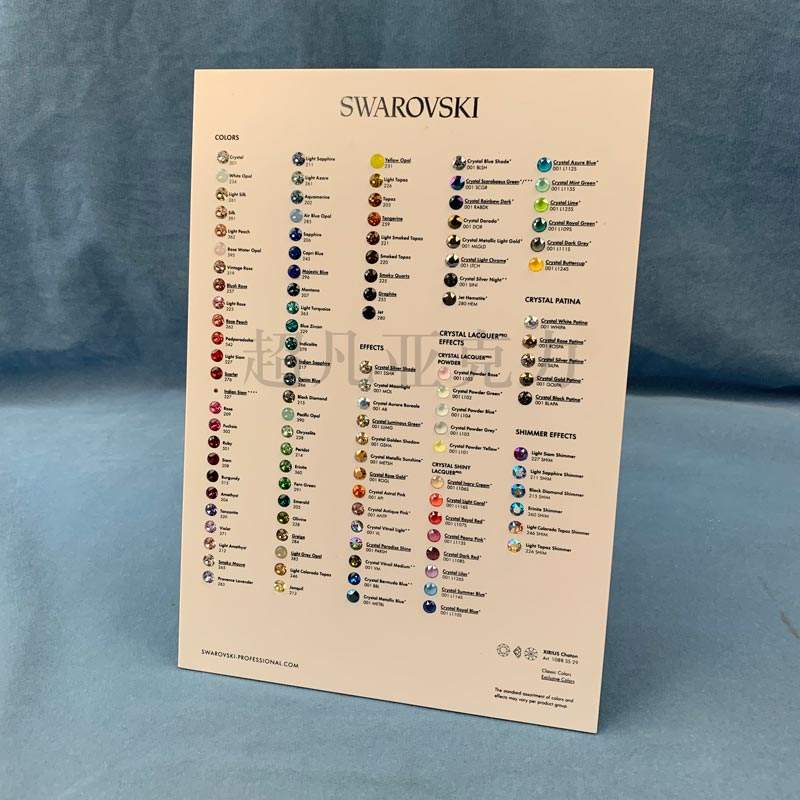 แผนภูมิสีคริสตัลอะคริลิคแบบกำหนดเอง 110 สี สำหรับอัญมณีอะคริลิค สำหรับ Swarovski
