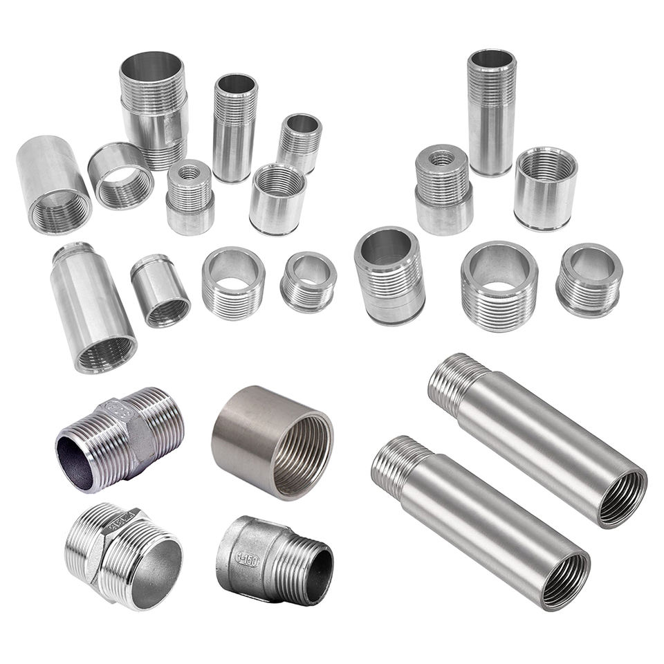 ข้อต่อสแตนเลสแบบกำหนดขนาดเส้นผ่านศูนย์กลางเอง NPT BSP PT ข้อต่อท่อสแตนเลสแบบตัวผู้ตัวเมีย สำหรับเครื่องทำความร้อน