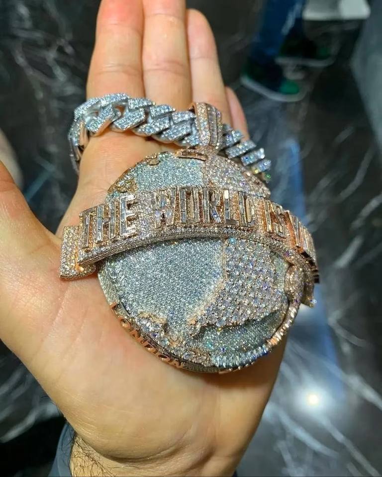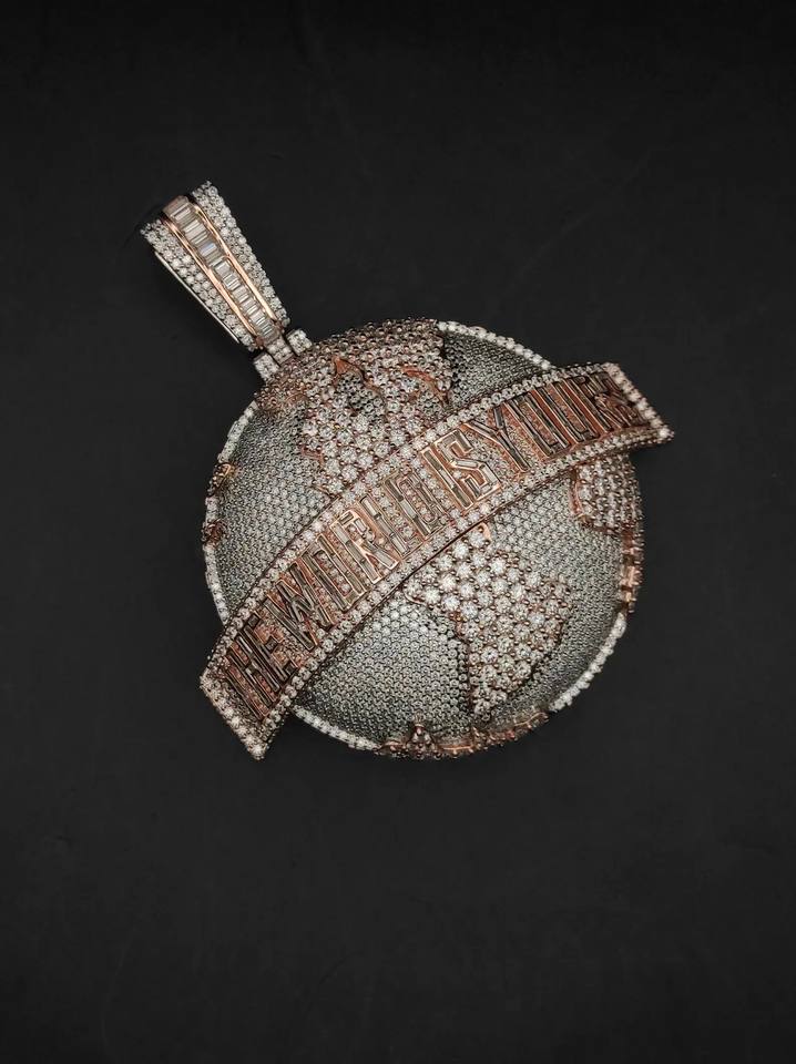 Custom Diamond Globe Pendant The World Is Yours' Iced Out Hip Hop Necklace, Rose Gold & Silver Bling Jewelry, Men's Statement