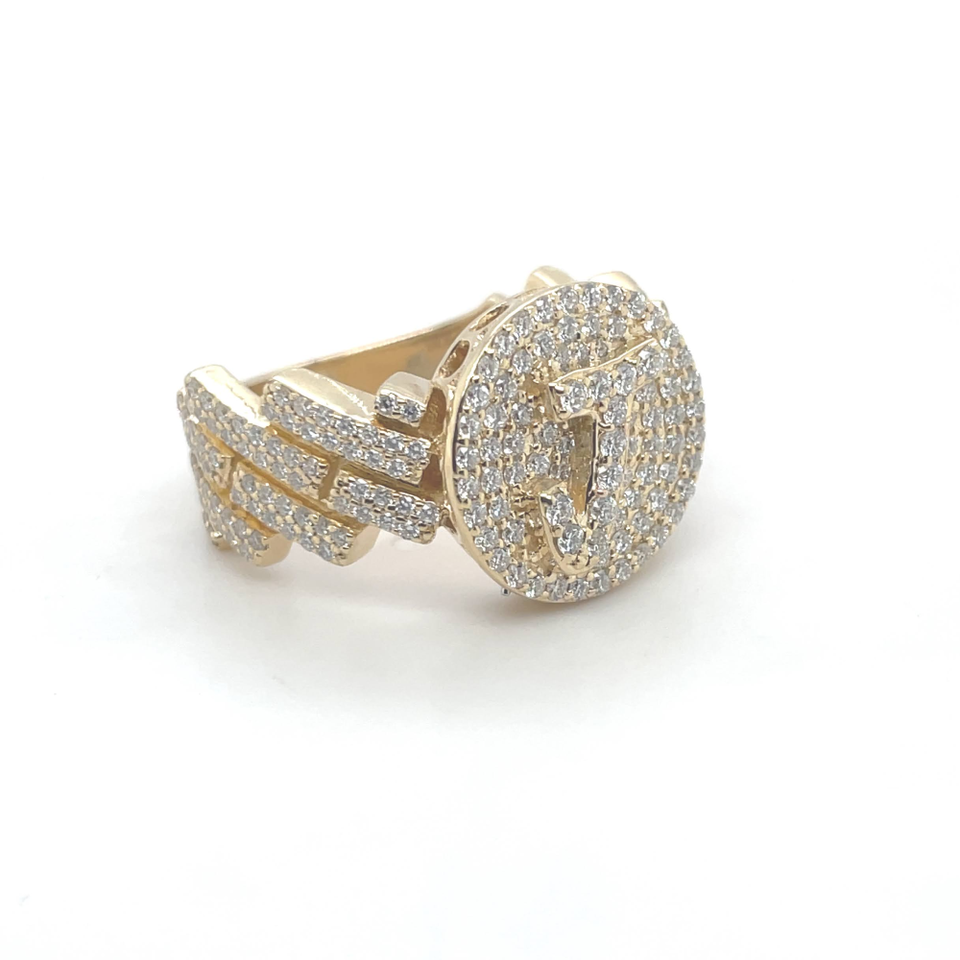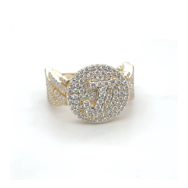แหวนทองตัวอักษรส่วนบุคคล10K เริ่มต้น "J" พร้อมเพชรปลูกในห้องทดลอง