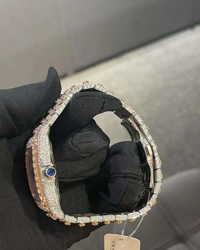 นาฬิกาเพชรแบบกำหนดเอง: นาฬิกาจักรกลผู้ชายสไตล์ฮิปฮอปประดับเพชรโมอิสซาไนต์ VVS คุณภาพสูง นาฬิกาข้อมือหรูหรา