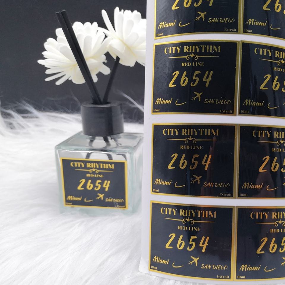 สติกเกอร์ซีลโลโก้ PVC แบบกำหนดเอง กันน้ำ พิมพ์ไวนิล ฉลากกาว สำหรับบรรจุภัณฑ์น้ำหอม บรรจุภัณฑ์แบบถ่ายโอน ไวนิล