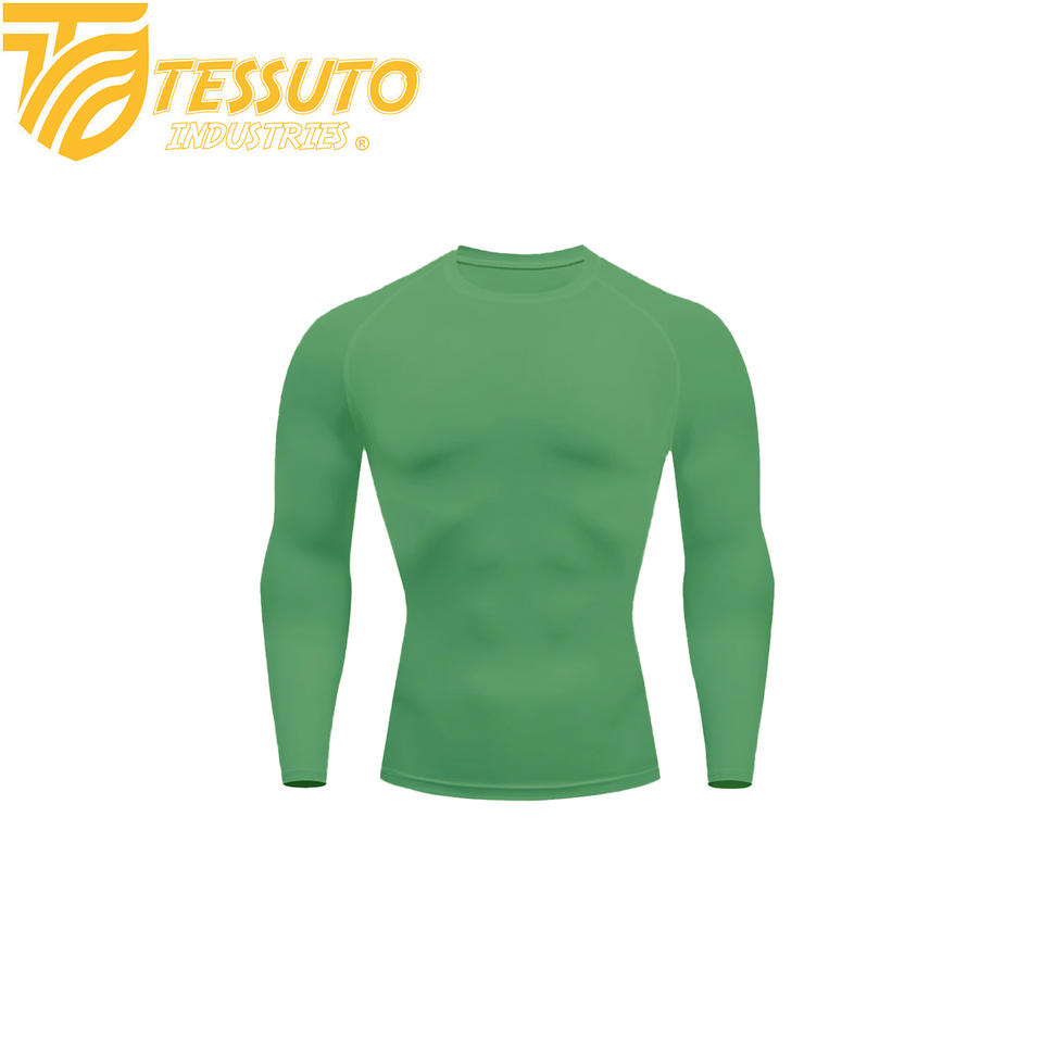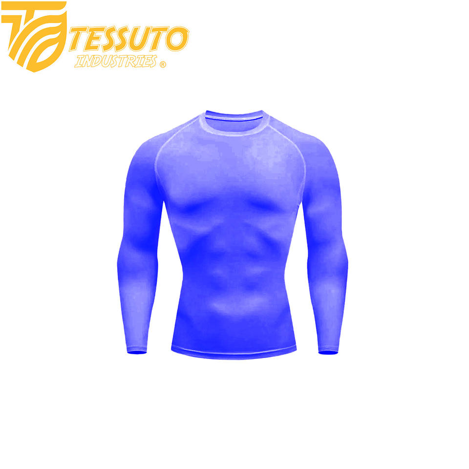 เสื้อรัดกล้ามแขนยาวสำหรับผู้ชาย ระบายอากาศได้ดี ผลิตจากผ้าสแปนเด็กซ์และโพลีเอสเตอร์ เป็นมิตรกับสิ่งแวดล้อม ซับเหงื่อได้ดี รับพิมพ์ลายแบบซับลิเมชั่นตามสั่ง