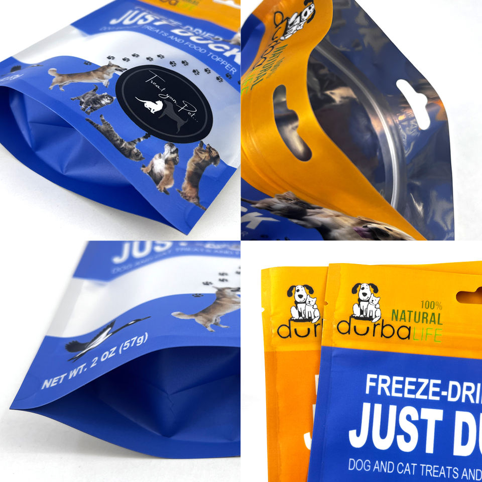 ถุงซิปล็อคพิมพ์ลายดิจิทัลแบบกำหนดเอง ถุงไมลาร์แบบตั้งได้ สำหรับบรรจุขนมสุนัข
