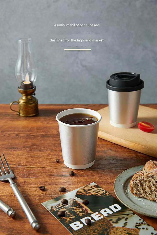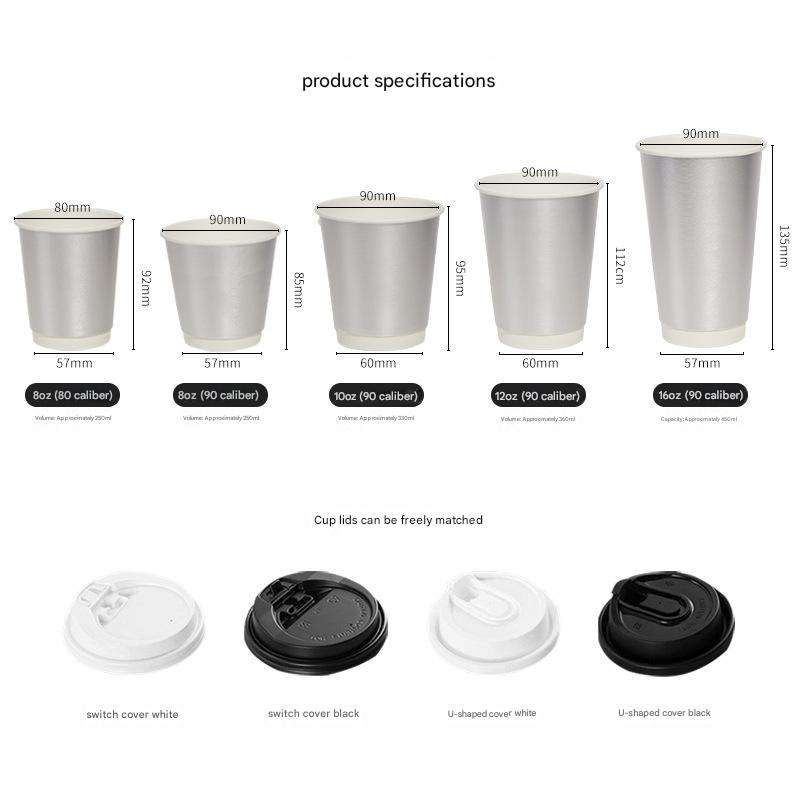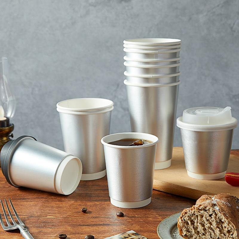 แก้วกาแฟกระดาษสองชั้นเคลือบเงินแบบใช้แล้วทิ้ง พิมพ์โลโก้ได้ ทนความร้อน