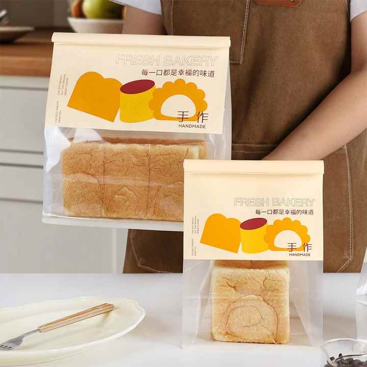 ถุงกระดาษใส่ขนมปังแบบใช้แล้วทิ้ง คุณภาพสูง กันน้ำ กันน้ำมัน ดีไซน์สวยงาม พร้อมหน้าต่าง