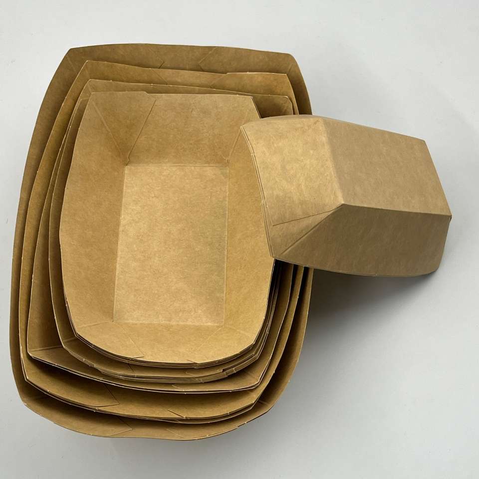ถาดกระดาษคราฟท์แบบใช้แล้วทิ้งเคลือบ PE สำหรับอาหารจานด่วน ถาดกระดาษคราฟท์ธรรมชาติ