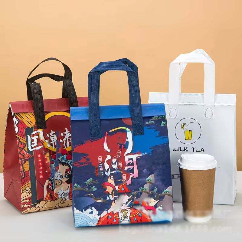 กระเป๋าเก็บความเย็นแบบใช้แล้วทิ้ง ผลิตจากผ้าไม่ถักทอ พิมพ์ลายตัวอักษร กันน้ำ เป็นมิตรกับสิ่งแวดล้อม เหมาะสำหรับจัดส่งอาหาร