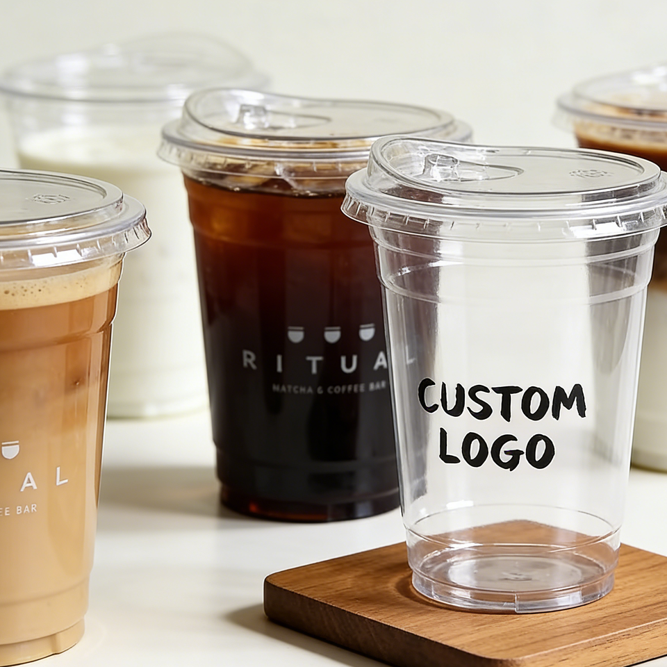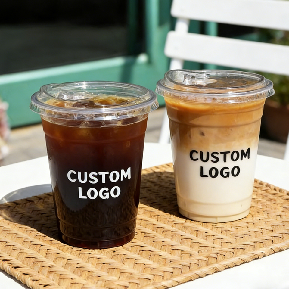 แก้วกาแฟพลาสติก PP แบบใช้แล้วทิ้ง พิมพ์ลาย UV พร้อมโลโก้และฝาปิด ขนาด 90 มม. สำหรับร้านกาแฟ