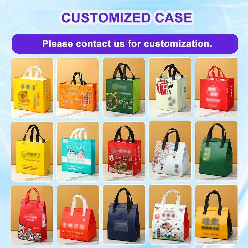 กระเป๋าเก็บความร้อนแบบใช้แล้วทิ้ง ผ้าไม่ทอ บุฟอยล์อะลูมิเนียม กันน้ำ พับได้ สำหรับเครื่องดื่มร้อน-เย็น อาหาร อาหารกลางวัน