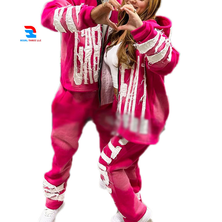 Keywords:Sports Distressed Printed Track Suits Ladies