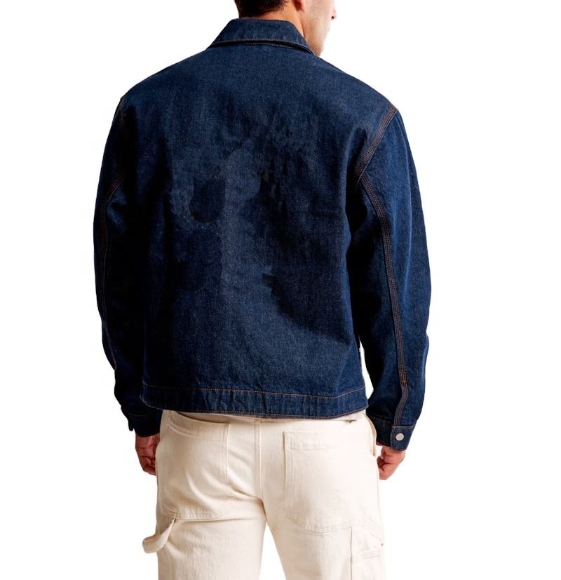 เสื้อแจ็คเก็ตผ้าแคนวาสสไตล์วินเทจแบบดิสเทรส ผ้าฝ้ายซาตินทอ 100% สำหรับช่างฝีมือ แจ็คเก็ตทำงานสไตล์ดีทรอยต์สำหรับผู้ชาย
